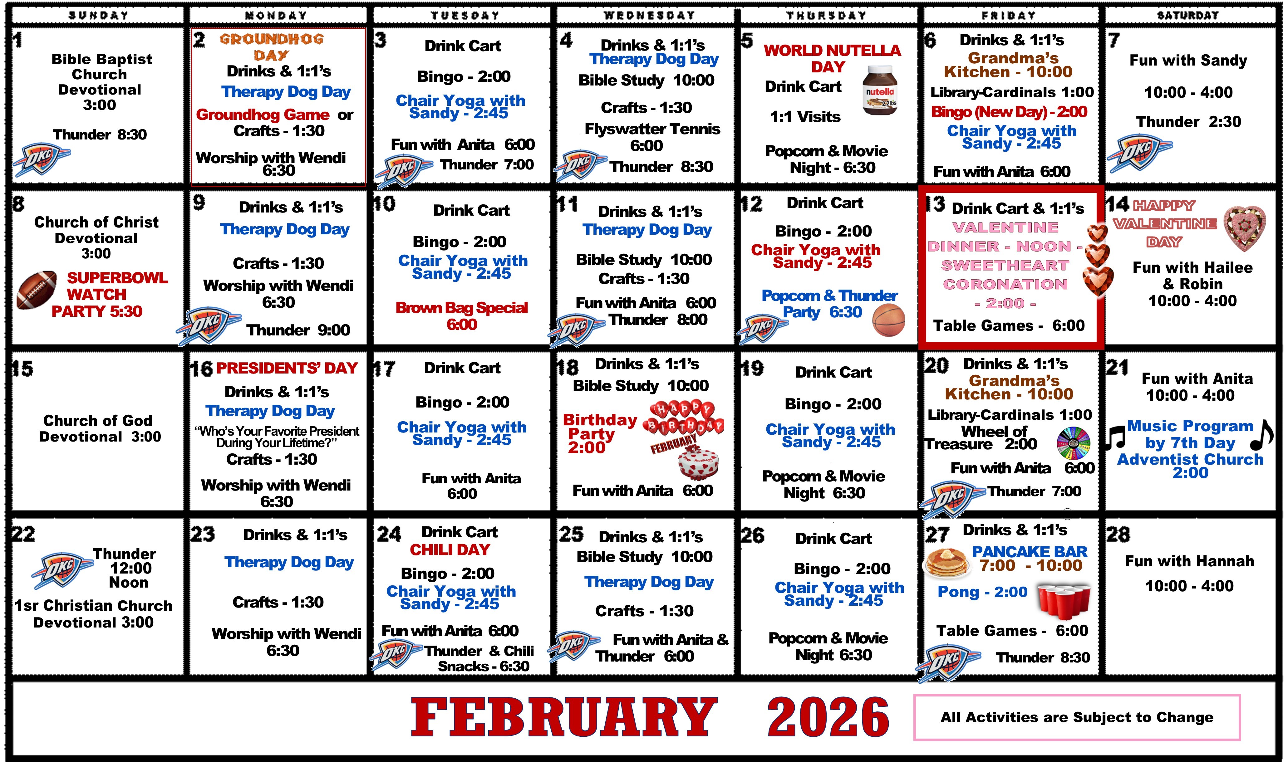 Beadles has a long history of involvement with community organizations and church ministries. Our activity department initiated and coordinates annual Senior Challenge competition events for nursing home residents in Northwest Oklahoma and Southern Kansas.
